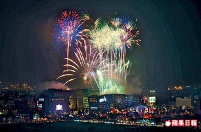 臺中市跨年晚會在臺中體育場登場,由偶像王力宏開場,涌入20萬人。臺中市長胡志強與可愛教主楊丞琳一起倒數(shù)后,施放長達180秒的煙火,但放學就到場等候的初二生陳曉惠有點失望說:“今年太冷了,偶像也少了點!”