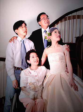 陳水扁吳淑珍帶著年幼的陳幸妤和陳致中。