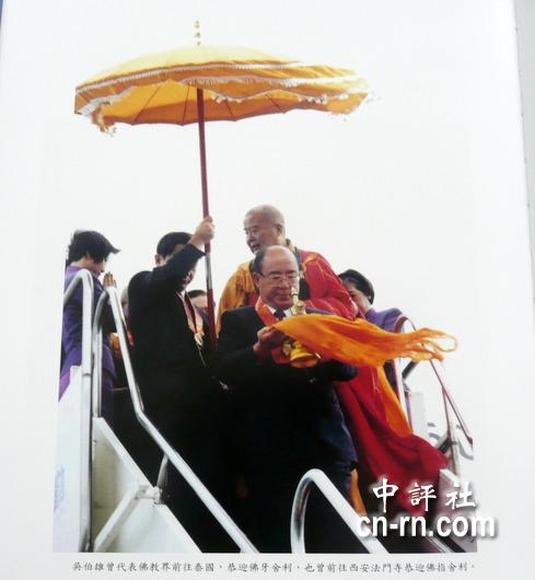 吳伯雄隨星云大師赴泰國恭迎佛牙舍利。(中評社 倪鴻祥翻拍)