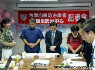 臺(tái)灣自殺防治學(xué)會(huì)8月31日召開(kāi)記者會(huì),呼吁“莫拉克”風(fēng)災(zāi)災(zāi)后心靈重建的重要性。開(kāi)會(huì)前,大家起立為“莫拉克”風(fēng)災(zāi)罹難者默哀。圖片來(lái)源:臺(tái)灣“今日新聞”