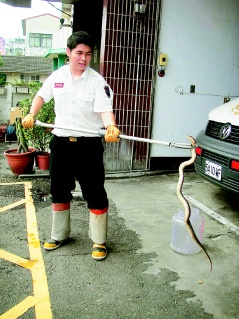 彰化縣竹塘消防分隊24日再抓到1條眼鏡蛇。圖片來源:臺灣《聯合報》