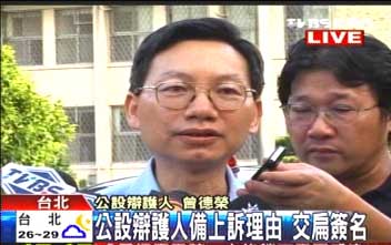 陳水扁簽完了狀紙,曾德榮馬不停蹄要趕往法院遞交上訴狀,因此無暇說明上訴理由究竟為何。