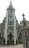 地址 高雄市前金區(qū)五福三路151號 電話 (07)282-3860 營業(yè)時間 周日6點-17點 位于五福三路高雄大橋旁的前金玫瑰圣母院,建于清咸豐年間,是臺灣第一座天主堂;混合哥德式與羅馬式風(fēng)格的尖塔建筑,被認(rèn)為是臺灣最富裝飾藝術(shù)的教堂,已被列為三級古跡。 教堂正面為高聳的尖塔,兩旁另有小型衛(wèi)塔,門眉上仍懸著咸豐敕令的“奉旨”石碑,圓形拱門上有長翅膀的小天使浮雕,黑、灰、藍(lán)為主的建筑中,排列著彩色玻璃圓拱窗,鮮明耀眼的色調(diào),為圣堂增添瑰麗莊嚴(yán)。內(nèi)部交叉拱筋及神龕映著彩色玻璃,極為莊重,雕工精細(xì)的木質(zhì)中央祭臺則是19世紀(jì)西班牙所做,在臺灣老式教堂中屬于罕見的藝術(shù)珍品,二樓則有成列管風(fēng)琴,其藝術(shù)性相當(dāng)引人流連。 乘車風(fēng)向標(biāo):