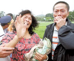 一位被救出的小林部落婦女,見(jiàn)到等候許久的親人痛哭不已。圖片來(lái)源:臺(tái)灣《中國(guó)時(shí)報(bào)》