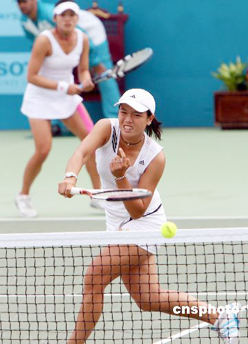 中新網(wǎng)9月7日電 據(jù)“中央社”報(bào)道,“中國(guó)臺(tái)北黃金女雙”詹詠然、莊佳容今天凌晨在2007美國(guó)網(wǎng)球公開(kāi)賽女雙四強(qiáng),以六比二、七比六力退匈牙利薩薇和捷克尤里諾娃的組合,順利闖進(jìn)決賽,她們?cè)跊Q賽中的對(duì)手是大會(huì)七號(hào)種子法國(guó)戴綺和俄羅斯的薩芬娜。詹、莊兩人異口同聲的表示,很高興再度晉級(jí)大滿(mǎn)貫決賽,也做好一切準(zhǔn)備。