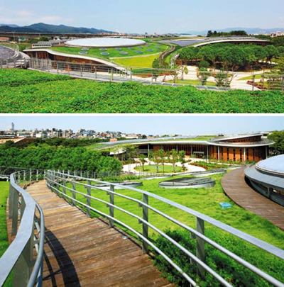 美麗綠建筑花博新生三館勇奪2010臺(tái)灣建筑獎(jiǎng)一等獎(jiǎng),評(píng)審認(rèn)為,這是臺(tái)灣少有的“美麗綠建筑”,對(duì)環(huán)境的尊重、樹(shù)的保留、風(fēng)向與陽(yáng)光等處理都極細(xì)膩,建筑隱藏于綠地之中,看來(lái)象是“從地上長(zhǎng)出來(lái)的建筑”。圖片來(lái)源:臺(tái)灣《聯(lián)合報(bào)》