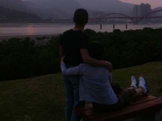 Selina和任爸到關渡看夕陽。圖片來自Selina微博