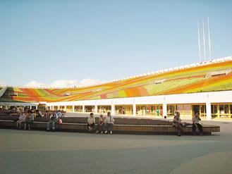 如何把全數(shù)21萬盆的草花擺上足球場的看臺,還要呈現(xiàn)出“七道彩虹”的圖案是個大工程。丁錫鏞說,考慮過擺設(shè)斜放的盆架裝置草花,也曾想過編置藤架供草花攀藤生長,后來決定在看臺搭設(shè)底座,然后依照圖案上色,種花的工人只要依照底座的顏色,把相對應(yīng)的草花放進花盆中就錯不了。