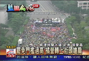 中國臺灣網6月3日消息 據臺媒報道,親民黨所發動的“全民嗆扁,阿扁下臺”活動,目前已經正式豋場。現在有相當多的民眾涌入凱達格蘭大道,親民黨主席宋楚瑜親自到場參加。