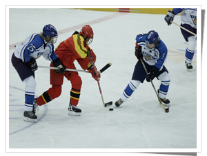 冰球場長61米,寬30米,四周有高1.15 ~1.22米的界墻。球門高1.22米,寬1.83米。分兩隊(duì)比賽,比賽分三局進(jìn)行,每局20分鐘,中間休息15分鐘,進(jìn)一球得1分,得分多者為勝。最好的冰球選手的滑行速度可以達(dá)到50公里/小時。同足球不同,冰球可以隨意換人,沒有名額限制。