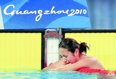 這是韓國女選手鄭達萊在昨晚的女子200米蛙泳比賽中奪冠后的鏡頭,由于過度激動,她甚至沒來得及爬出泳池就失聲痛哭。鄭達萊如此激動是因為她在中日的包圍圈中突圍而出,打破了韓國女子游泳12年來未獲亞運金牌的紀錄。這枚突如其來的金牌瞬間引爆了韓國網(wǎng)友的熱烈反響,很多人把她夸為“實力與美貌并存的真正美女”。