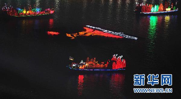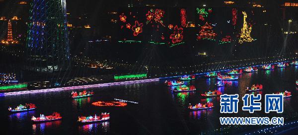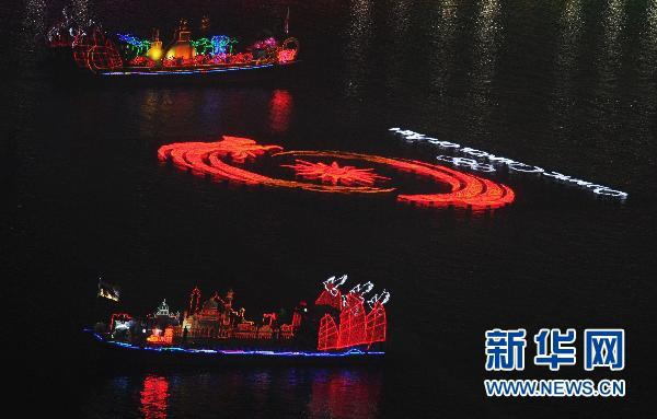 第16屆亞運(yùn)會閉幕式在廣州舉行 11月27日,第16屆亞運(yùn)會閉幕式在廣州舉行。這是參加閉幕式的花船在珠江上巡游。 新華社記者徐家軍攝