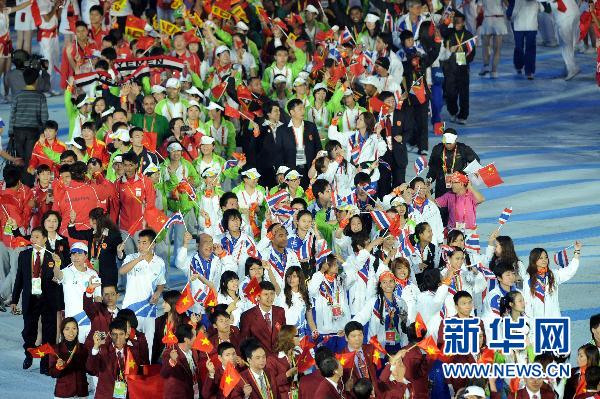 11月27日,代表團在閉幕式上入場。當日,第16屆亞運會閉幕式在廣州市海心沙島舉行。 新華社記者李勇攝