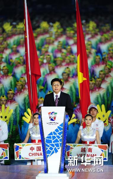 12月12日,廣州亞殘運會組委會執行主席、廣東省省長黃華華在開幕式上致辭。當日,廣州2010年亞洲殘疾人運動會開幕式在廣州廣東奧林匹克體育中心舉行。新華社記者江宏景攝