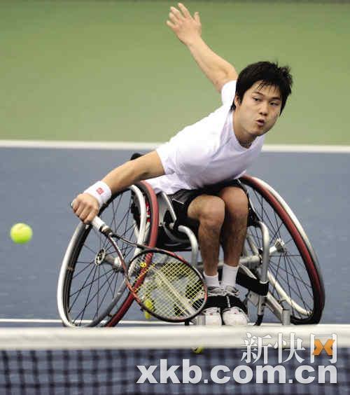 “我11歲開(kāi)始接觸輪椅網(wǎng)球,到現(xiàn)在已經(jīng)打了15年!”昨天在男子雙打1/4決賽前,記者總算逮到機(jī)會(huì)采訪了國(guó)枝慎吾。典型的陽(yáng)光大男孩,很喜歡笑,而且笑容中散發(fā)出來(lái)的暖意仿佛可以滲透人心。一到網(wǎng)球場(chǎng),他就搖身一變成為所向披靡的高手,霸氣十足。截至上個(gè)月,國(guó)枝慎吾已保持了連續(xù)107場(chǎng)比賽不敗的輝煌戰(zhàn)績(jī)。