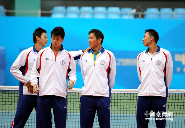 中國(guó)臺(tái)灣網(wǎng)11月16日廣州消息 第十六屆廣州亞運(yùn)會(huì)男子網(wǎng)球團(tuán)體決賽,中華臺(tái)北隊(duì)力克強(qiáng)敵烏茲別克斯坦隊(duì),摘得金牌。(記者 鐘寶華)