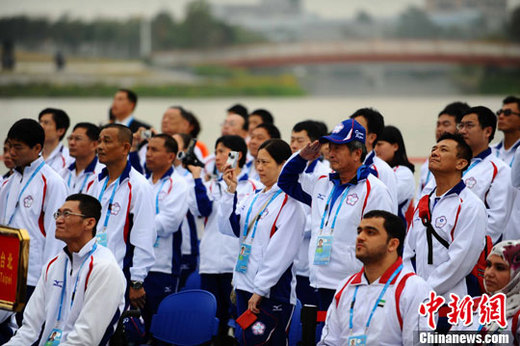 10日下午,廣州亞運城升旗廣場,中華臺北代表團舉行升旗儀式。中新社記者 柯小軍 攝