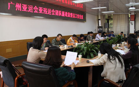 廣州亞運會亞殘運會22個團隊的廉政監督員、運動員村監督部和亞組委監察審計部領導及工作人員共35人出席了會議。