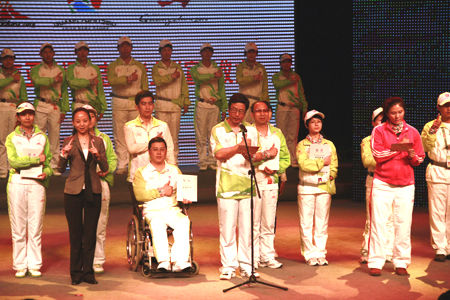 廣州市政府副秘書長、廣州亞殘運會組委會副秘書長林道平向亞殘運會志愿者代表頒發了《亞殘運會志愿者錄用證書》。