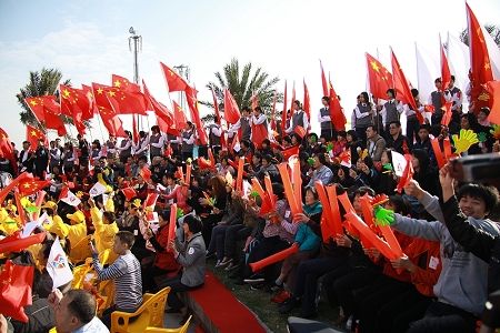 上午11時許,最后一名火炬手在護衛隊員的護送下慢步進入收火儀式現場——廣州南沙資訊科技園。廣州亞殘運會組委會秘書行政部部長李乃鎮同志上場迎接今天最后一棒火炬手、殘奧會坐式排球冠軍楊艷玲。亞洲殘疾人運動會在廣州南沙奧林匹克廣場的火炬傳遞活動圓滿結束。