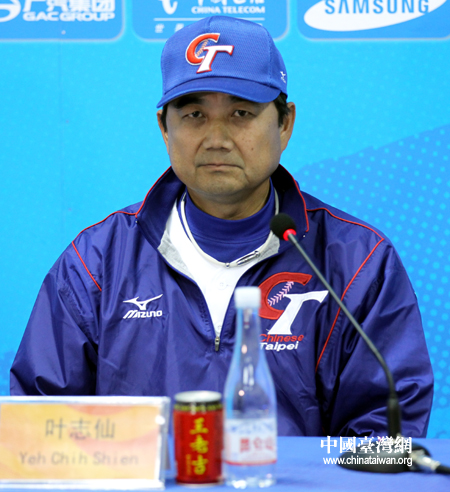 中華臺北棒球隊教練出席賽后的新聞發布會,一臉嚴肅。(中國臺灣網 沈鵬 攝)