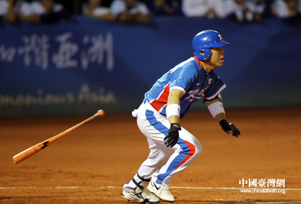 韓國隊隊員擊球命中后迅速跑壘。(中國臺灣網 鐘寶華 攝)