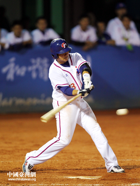 中華臺北隊擊球瞬間。(中國臺灣網 鐘寶華 攝)