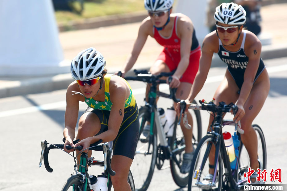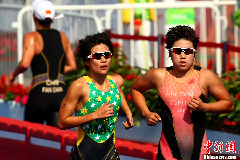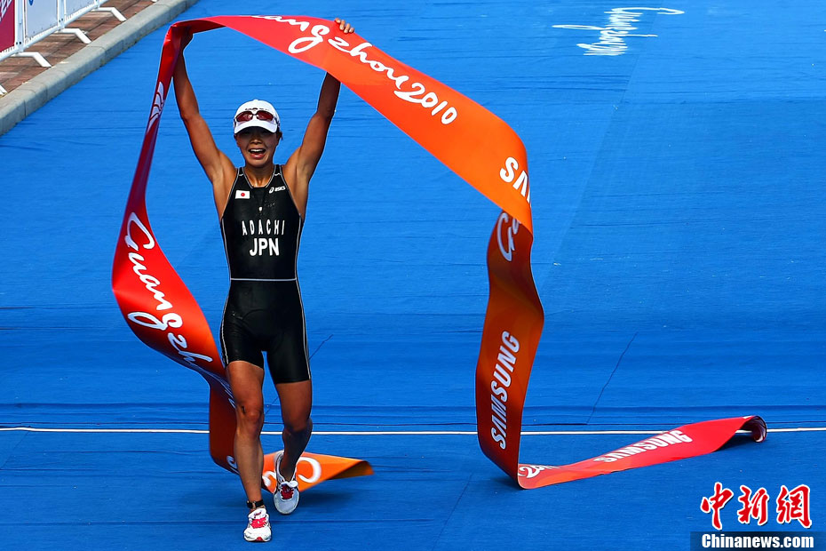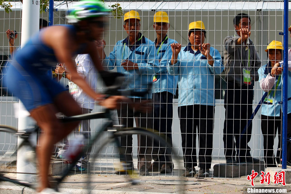 11月13日,在廣州亞運會女子鐵人三項比賽中,日本選手足立真梨子摘金,成為日本代表團在本屆賽事上的首面金牌。日本選手土橋茜子獲銀牌,銅牌獲得者是韓國選手張允貞。中國澳門隊許朗排第四,中國小將劉婷排在五名。圖為鐵人三項賽場外的工作人員觀看賽事。中新社記者 富田 攝