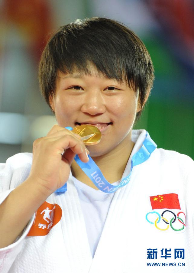 23歲的中國柔道名將秦茜在13日進行了深圳世界大學生運動會女子78公斤以上級比賽中擊敗了韓國選手金誽永,獲得了該項目的冠軍。這也是本屆大運會上中國代表團奪得的首枚金牌。 這是秦茜繼2009年貝爾格萊德大運會上摘金之后奪得的第二枚大運會金牌,她也在78公斤以上級項目上成功衛冕。金誽永獲得銀牌,銅牌得主為法國選手安德爾和土耳其選手卡亞。