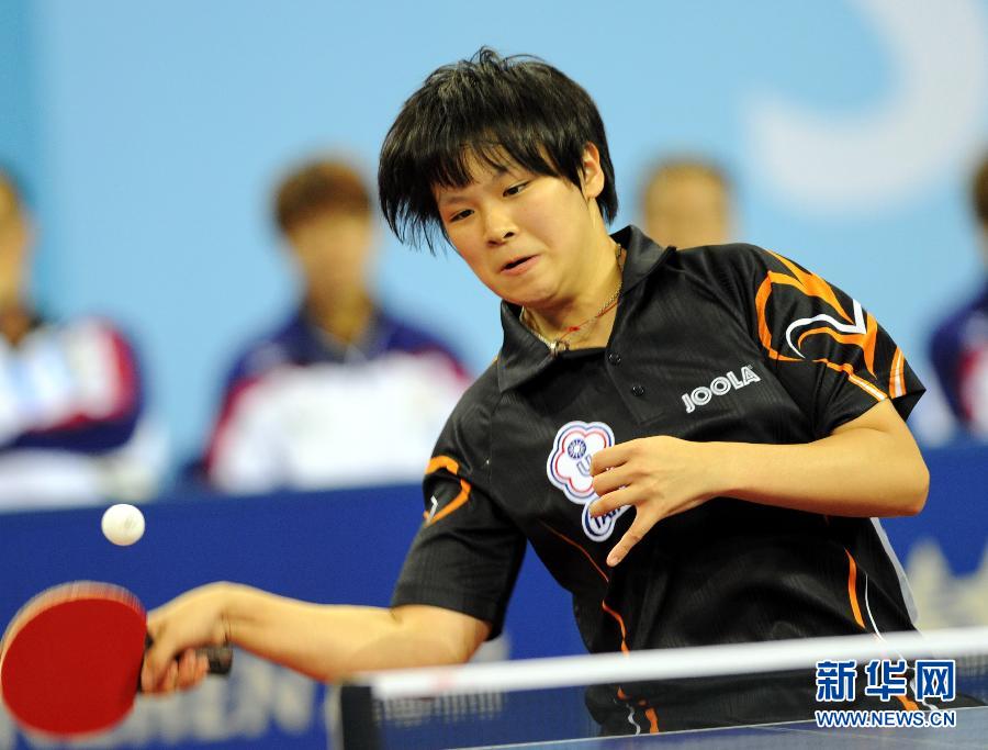 8月13日,中華臺(tái)北隊(duì)選手鄭怡靜在比賽中回球,她以1比3不敵中國(guó)隊(duì)選手饒靜文。當(dāng)日,在第二十六屆世界大學(xué)生運(yùn)動(dòng)會(huì)乒乓球女子團(tuán)體首輪比賽中,中華臺(tái)北隊(duì)以0比3不敵中國(guó)隊(duì)。新華社記者楊世堯攝