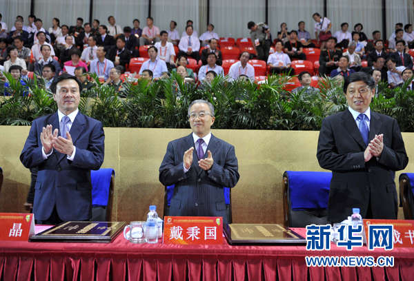 9月18日,第九屆全國少數民族傳統體育運動會在貴陽閉幕。國務委員戴秉國(中)出席閉幕式并宣布第九屆全國少數民族傳統體育運動會閉幕。新華社記者王鵬攝