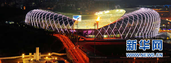9月18日,第九屆全國少數民族傳統體育運動會閉幕式舉辦場館——貴陽奧體中心外景格外迷人。當日,第九屆全國少數民族傳統體育運動會在貴州省貴陽市落下帷幕。新華社記者 劉續 攝