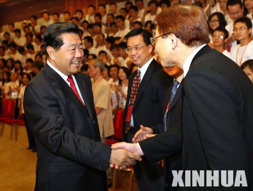 8月20日,中共中央政治局常委、全國政協(xié)主席賈慶林在北京會見參加“兩岸同胞攜手迎奧運(yùn)”青年交流活動(dòng)的全體代表。新華社記者 李濤 攝