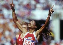 美國名將喬伊納,她一人包攬了女子100米,200米和4X100米接力三個項目的金牌,并在4X400米接力項目中與隊友一起奪得銀牌。喬伊納以21秒34刷新了女子200米的世界紀錄,在100米項目中,她跑出的10秒54的成績也是奧運會歷史上的最快紀錄,但由于被確認為受到風力的影響,因此不能成為新的世界紀錄。