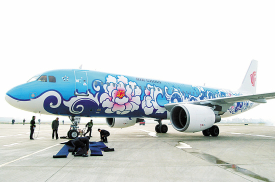 浙江在線12月03日訊 12月2日,2架噴涂有國花“牡丹”圖案的空客A320先后降臨杭州蕭山國際機(jī)場(chǎng)。這是國航浙江分公司專門為杭州至臺(tái)灣航線開通而噴涂的兩架“牡丹號(hào)”——夢(mèng)幻藍(lán)和丁香紫。