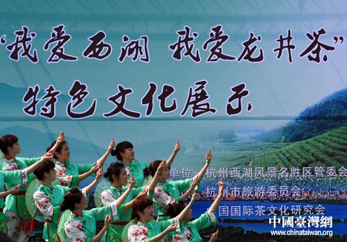 30日上午,2009年“我愛西湖,我愛龍井茶”西湖龍井茶特色展示活動在杭州市涌金廣場隆重舉行。圖為活動開始前的精彩文藝表演。(中國臺灣網 田云鵬 攝)