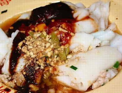 店家:來賓市商城樓下(原金三角粉餃),特點:餃子是將糯米打成米漿后曬干的面做的皮,餡是木耳香菇瘦肉,純正的香,餃子皮晶瑩透亮,吃在嘴里韌性十足,很Q。現做現賣,配上店家自制的酸辣料,吃后讓人回味N久。店家:小街老牌卷粉(小街巷口第一家),特點:據說很好吃,本人沒試過,清江力薦。待嘗過再做評論。鑒定完:比較滑爽,口感偏酸甜,不膩,花生粉末增加了香味。