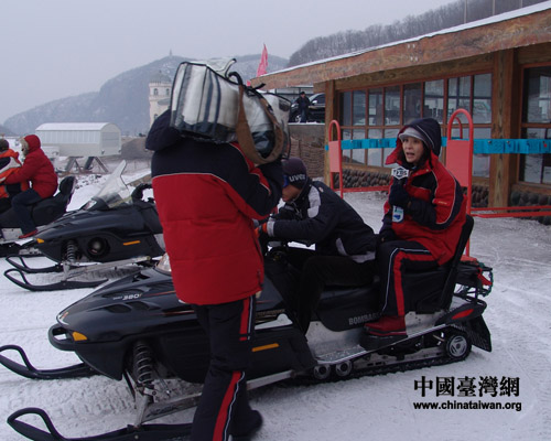 哈爾濱吉華滑雪場(chǎng)位于賓縣賓西國(guó)家森林公園,距哈爾濱46公里,是黑龍江省SSS級(jí)旅游滑雪場(chǎng)。圖為“TVBS”的記者向觀眾介紹雪上摩托。在臺(tái)灣,冬天除了高山上會(huì)下雪,其他的地方都不會(huì)下,所以說,基本上住在城市里的人都沒見過雪哦!