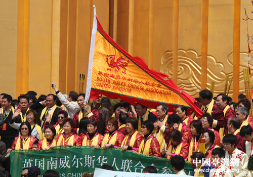 11時,大典進入祈福中華環節。“草原英雄小姐妹”龍梅、中國探月工程副總設計師龍樂豪、奧運冠軍鄧亞萍、中國赴海地維和警察張偉等優秀炎黃子孫代表逐一將祈福牌掛上祈福樹,祈福中華盛世。