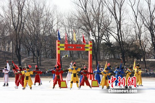 清代歷史上被視為“國俗”的冰嬉表演在消失百年后首次重現(xiàn)古都北京,成為第二屆圓明園皇家廟會的最大亮點(diǎn)。 應(yīng)妮 攝