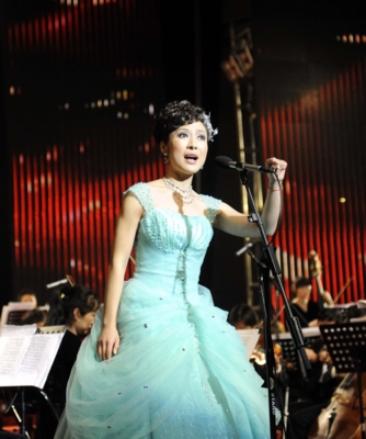 交響樂晚會現(xiàn)場,何瑩唱了一首耳熟能詳?shù)摹犊刺煜聞诳嗳嗣竦媒夥拧贰V馨仄?攝
