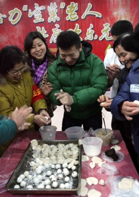 昨日,開福區(qū)荷花池社區(qū)的工作人員和社區(qū)的50多名空巢老人一起包著餃子、搓著湯丸、聊著家常。當(dāng)日,該社區(qū)組織的“給力空巢老人,共度歡樂元宵”啟動。賀文兵 攝