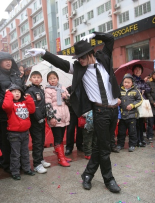 昨日,瀏陽市2011年“玉兔迎春萬象新”元宵節(jié)系列活動正式啟動,模仿秀達(dá)人胡呈才且歌且舞,將邁克爾·杰克遜模仿得惟妙惟肖。余志雄 攝
