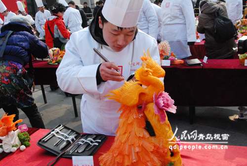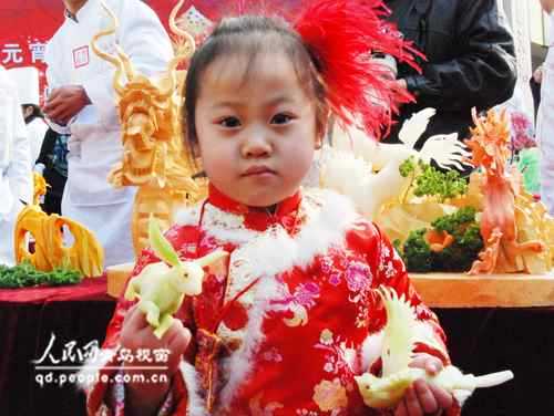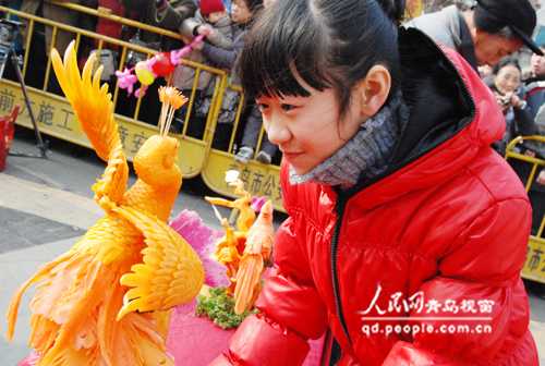 人民網(wǎng)青島2月11日電 (記者 楊紅) 今天,素有“青島新春第一節(jié)”之稱的2011青島(市北)蘿卜會(huì)·元宵山會(huì)拉開帷幕。清脆的蘿卜,唯妙唯肖的蘿卜雕刻、各地特色小吃、傳統(tǒng)高蹺、民間大鼓等吸引了數(shù)萬(wàn)市民前來(lái)參會(huì)。