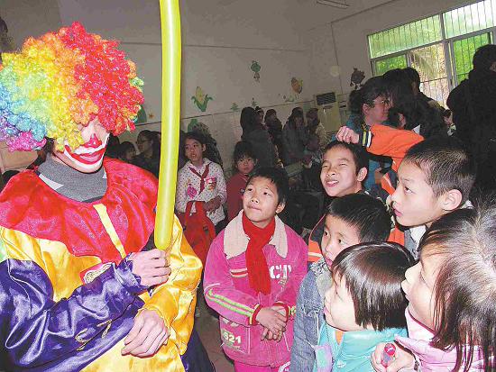 愛心網友小丑叔叔為孩子們帶來禮物 本報記者黃登攝