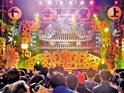 北港朝天宮元宵晚會登場,今年特別與福建湄洲媽祖廟合作,兩岸一起歡慶元宵節(jié)。圖片來源:臺灣《中國時(shí)報(bào)》