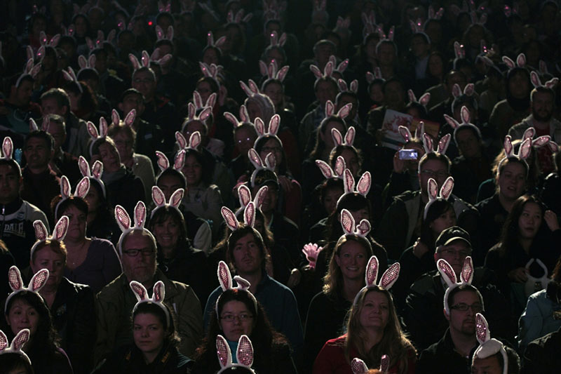 2011年1月,10余名南京藝術學院學生在南京玄武湖公園的地面上創作了許多以兔子為主題的三維立體畫,迎接兔年春節的到來。1月30日,游人在南京玄武湖公園一幅三維立體畫旁拍照留念。