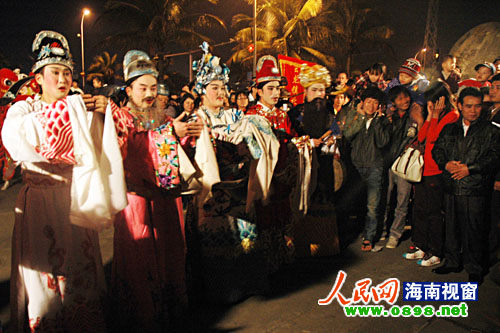 在海瑞故居的兩棵榕樹下,市民許愿祈福活動更是熱鬧,市民紛紛把新年愿望寫在卡片上,系上紅繩綁在榕樹下,祈求新的一年平安吉祥、順順利利。此外,當(dāng)晚的紅城湖廟會也人潮涌動、熱鬧非凡,燈展、游園、卡拉OK、木偶戲、傳統(tǒng)小吃、瓊劇票友演唱會等讓市民們興致濃濃。