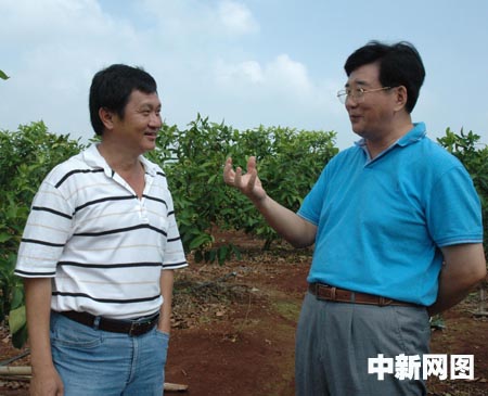 2006年10月,海南省臺辦徐剛主任(右)到定安縣臺資農(nóng)場金德豐公司察看蓮霧長勢,左為臺商黃益豐。(圖片來源:中國新聞網(wǎng))