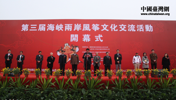 中國臺灣網4月20日濰坊消息 四月的濰坊,春意盎然,萬物生輝,在這美好時節,第三屆海峽兩岸風箏文化交流活動今日隆重開幕。濰坊是風箏的故鄉,風箏是友誼的使者,兩岸的風箏愛好者再次相聚在一起,必將增進了解共識,推進友好交流。